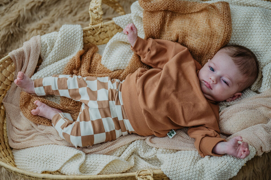 Handgemaakte baby- en kinderkleding van duurzame stoffen met certificering. De kleding is voorzien van maatlabels en van goede kwaliteit.